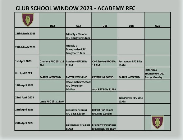 Club/School Window @ Academy RFC